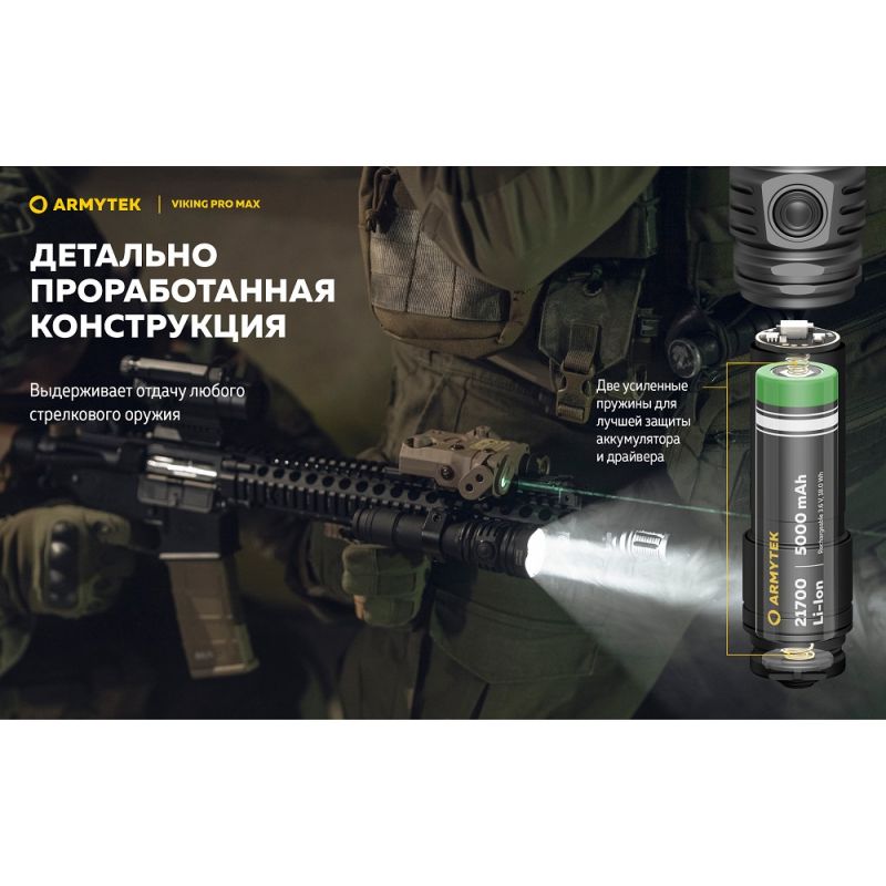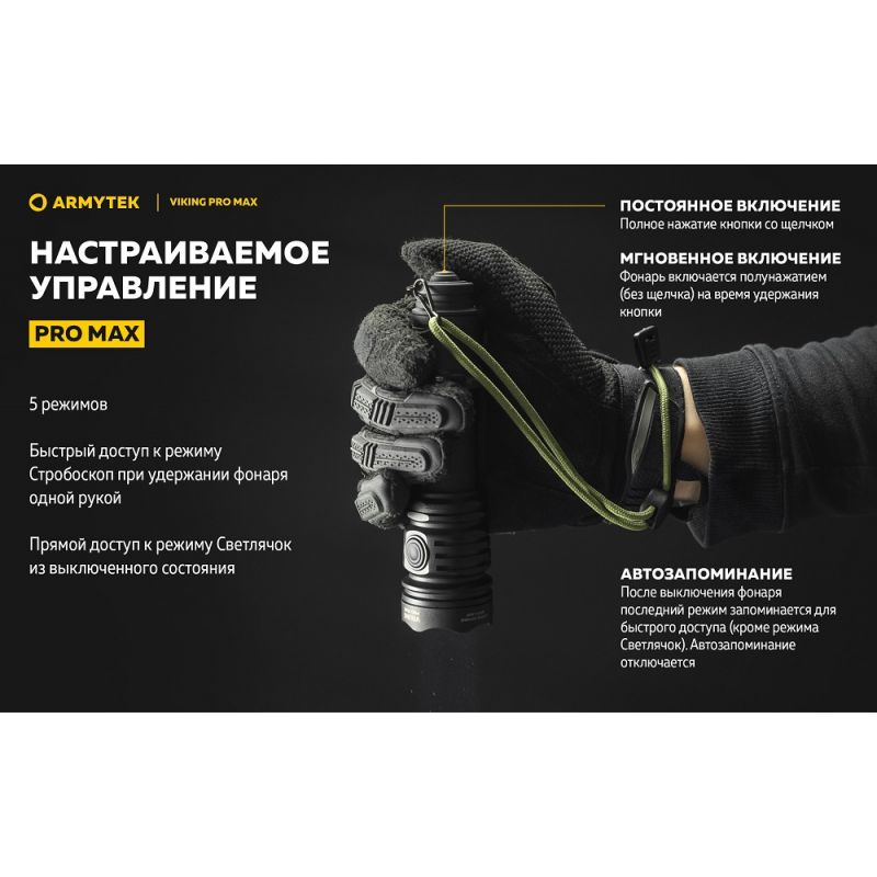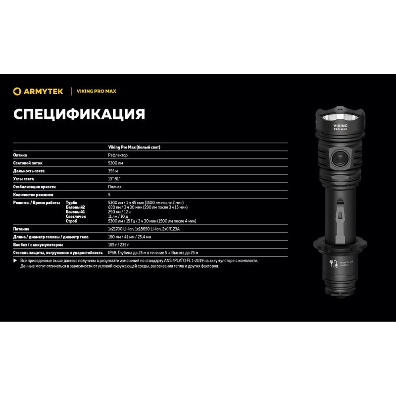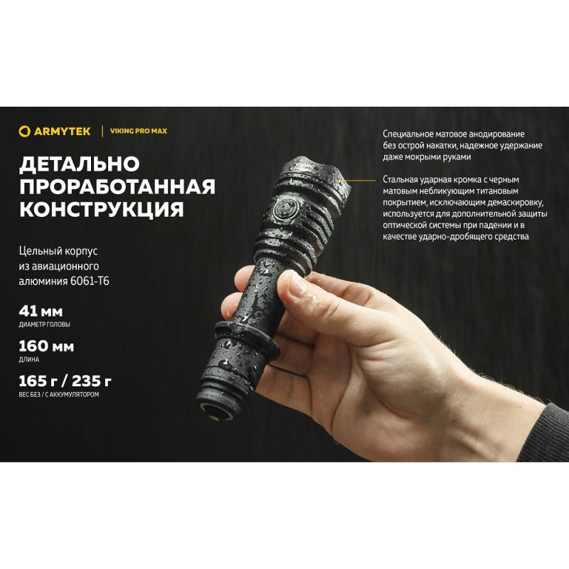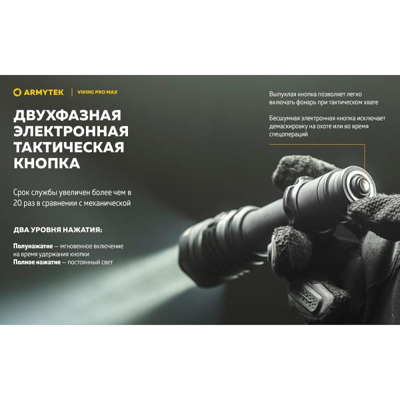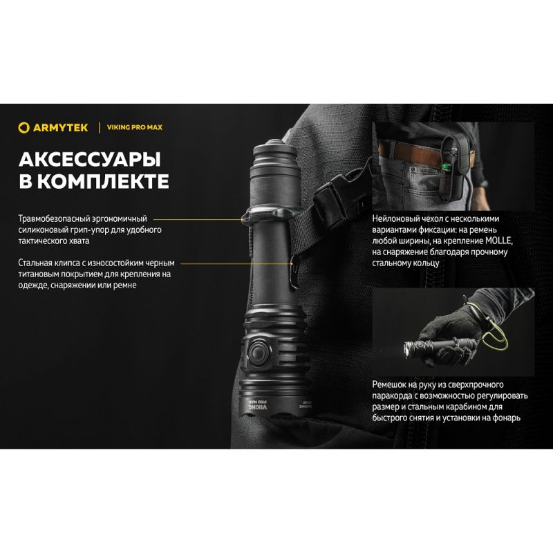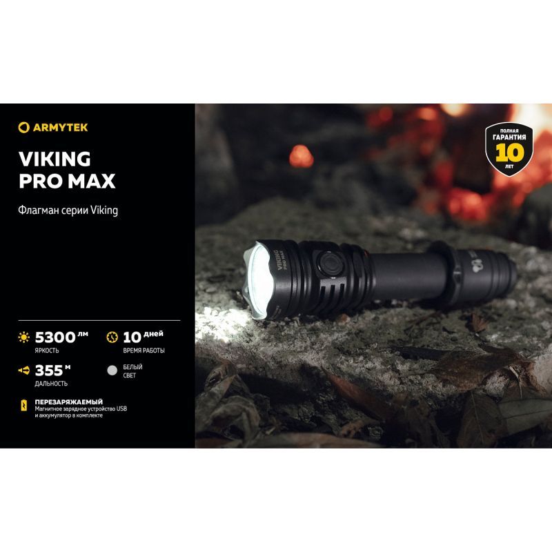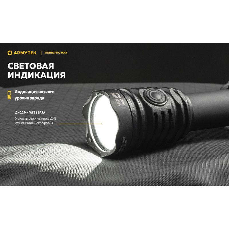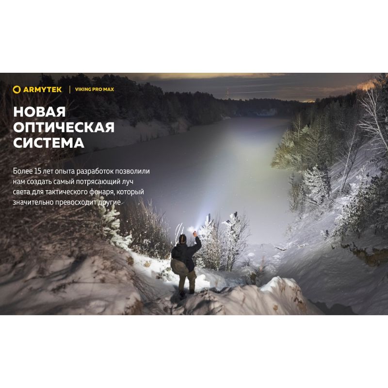 Ліхтар Armytek Viking v4 Pro MAX— це тактичний ліхтар із вражаючою яскравістю в 5300 люмен для вирішення спеціалізованих завдань, туризму та для полювання.